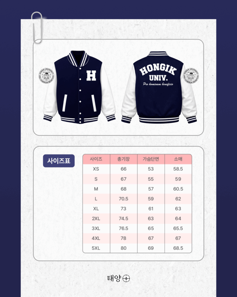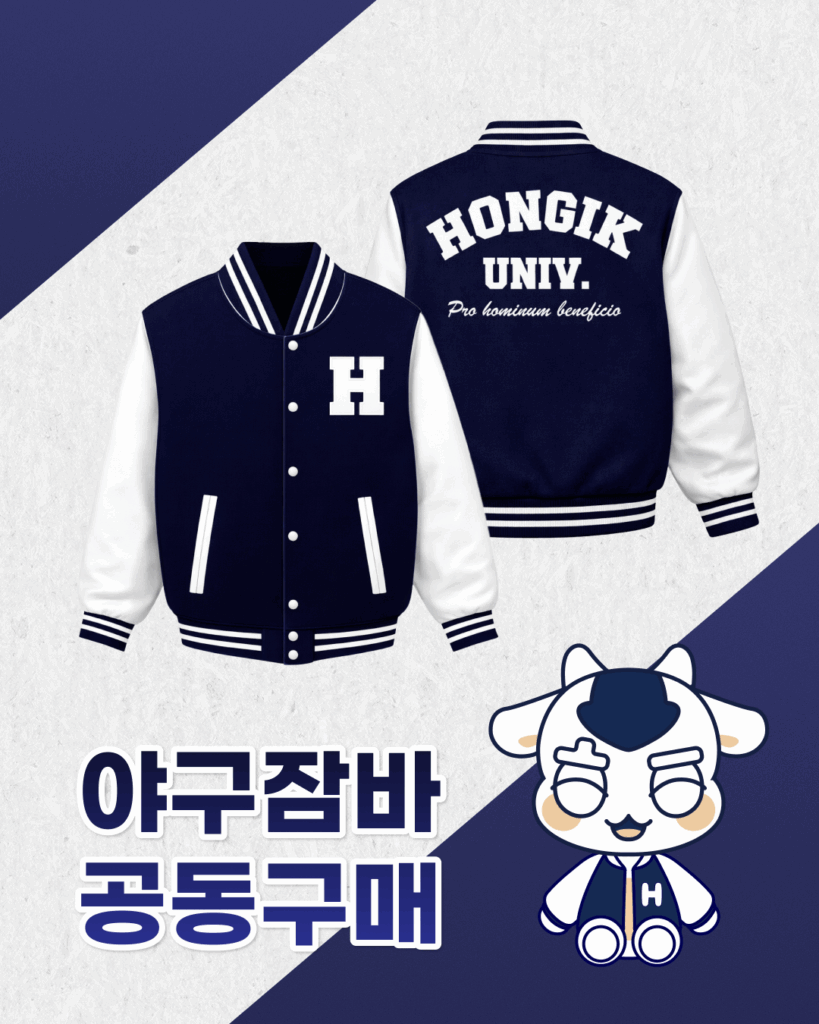 매년 많은 관심과 참여를 받아온 홍익대학교 야구잠바 공동구매를 올해에도 진행하게 되었습니다. 해당 공동구매는 정해진 기간 내 신청을 원칙으로 하며, 기간 이후에는 추가 구매가 어려울 수 있는 점 양해 부탁드립니다.